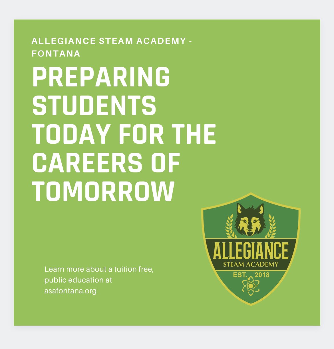 Google Map Link opens new browser tab. Allegiance STEAM Academy Fontana partners with families and communities to provide a high quality education that unleashes students natural potential for creativity and innovation.